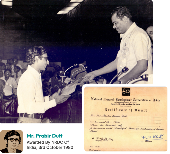 He contributed for almost a decade and during his stint as a Senior Scientist was awarded by National Research Development Corporation of India, 3rd October 1980 for his stellar invention of Ketonic Resin .